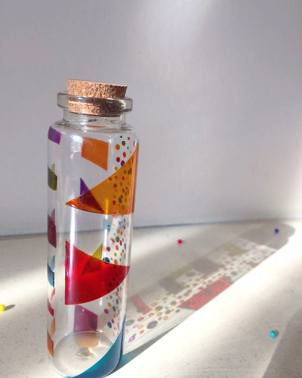 This piece is created with the glass fusion technique, the process involved glass cutting and placement, oven fusion, framing, hook shaping and soldering.